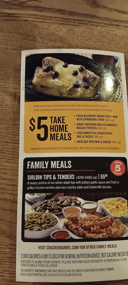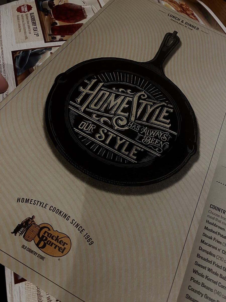 Introducing the Menu at Cracker Barrel Old Country Store